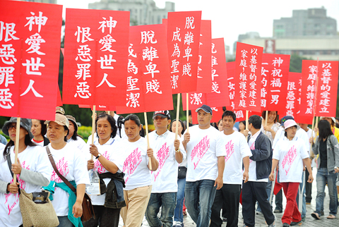 Worried about the impact of a gay rights parade on Oct. 31, hundreds of Christian anti-gay activists took to the streets of Taipei yesterday.