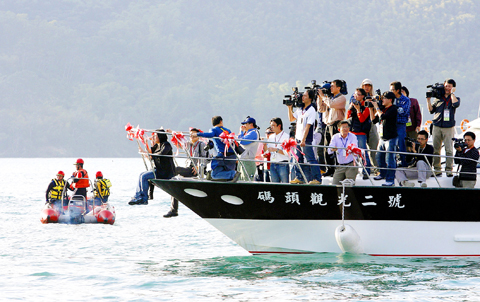 Despite Chen’s absence, SEF Chairman Chiang Pin-kung (江丙坤) and his wife still went on the lake tour with Chen’s wife.