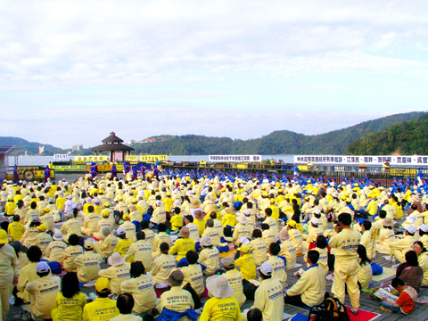 Only a few minor protests staged by Falun Gong practitioners and pro-independence supporters took place under heavy police surveillance around the lake yesterday.