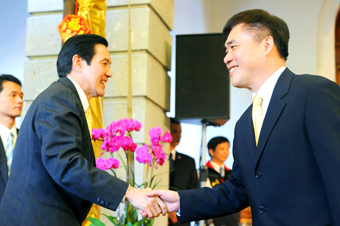 The event was organized by Chinese Nationalist Party (KMT) Legislator Lin Yu-fang (林郁方) and the Ministry of Foreign Affairs at the Taipei Guest House. Ma and Minister of Foreign Affairs Timothy Yang (楊進添) said they held the event to wish residents of the city’s Zhongzheng (中正) and Wanhua districts a happy new year and to celebrate the “dream come true” of the planned Wanda (萬大) line.