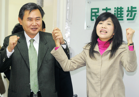 Pointing to a portrait of herself and former Tainan County commissioner Mark Chen (陳唐山), Yeh said that Chen had already pledged support for her campaign, adding that she hoped to continue the DPP’s record of placing women in government after the successful elections of female commissioners in both Yunlin and Chiayi counties.