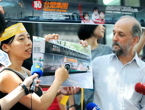 Environmentalists delivered the “Black Planet Award” to Formosa Plastics Group (FPG) yesterday.