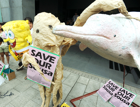 “Dolphins know how to make a detour in the waterfront at Taichung harbor, why can’t they do the same in Changhwa?” he asked.