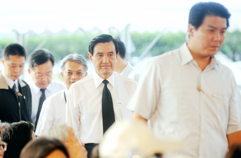 President Ma Ying-jeou (馬英九) yesterday expressed his condolences to victims of the White Terror era at a memorial in front of the Presidential Office.