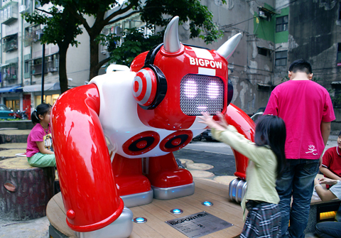 Another story in the book describes a public artwork called Bigpow designed by artist Akibo Lee (李明道). The robot-like figure catches the eyes of children whenever they pass by it in a park near the Zhongshan MRT Station in Taipei City.