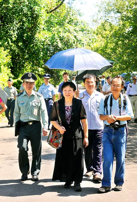 Chang toured the area with reporters, government officials and experts recruited by the Environmental Protection Administration (EPA). Aside from Chang, who was on her third visit, many were first-time visitors to the arsenal, which is a military restricted zone.