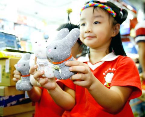 The sock bunnies, sold for NT$350 each, are sewn by unemployed mothers, foreign-born mothers, as well as mothers who live in remote or disaster-stricken areas such as Kaohsiung County’s Taoyuan Township (桃源), which suffered from severe flooding last year because of Typhoon Morakot, said Abby Chen (陳雅惠), deputy director of resource development at the Child Welfare League Foundation.