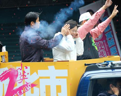 Accompanied by firecrackers and watched by scores of spectators, their motorcades and dozens of supporters came within several city blocks of one another in tightly fought Yonghe (永和), part of Taipei County, which will be renamed Sinbei after its upgrade to a special municipality next month.