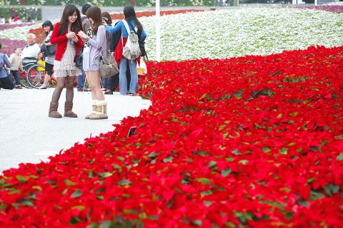 The Taipei International Flora Expo is decorating its Yuanshan Park area with over 70,000 poinsettias to celebrate the Christmas holidays.