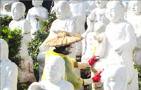 Hsin Pei (心培), the monastery’s head monk, said Buddha, as an -enlightened being, would not care if his images were covered with dust.