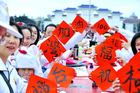 Later yesterday, thousands of people attended the annual calligraphy festival in Taipei, where Ma wrote a Chinese character to wish good fortune for the country.