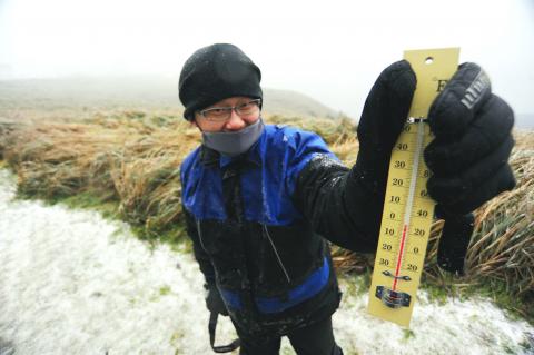 Yangmingshan was icy cold early yesterday morning, with temperatures dropping to 0oC, a report by the Central Weather Bureau said.