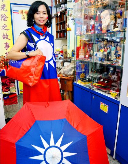 Merchandise featuring the Republic of China (ROC) flag is becoming increasingly popular as the ROC celebrates its 100th anniversary this year — and so is the owner of an ROC flag merchandise shop in Greater Kaohsiung, Yang Yu-mei (楊玉梅), whom local media have dubbed “the national flag girl.”