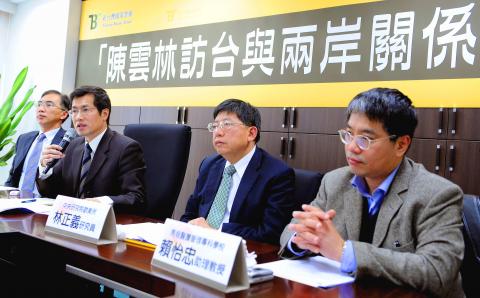 “Although his sightseeing tour has been billed as business and economic in nature, the decision to skip Greater Tainan was made out of political consideration and had a lot to do with Zhang Mingqing (張銘清),” Lin told the forum on cross-strait affairs organized by Taiwan Brain Trust, a think tank.