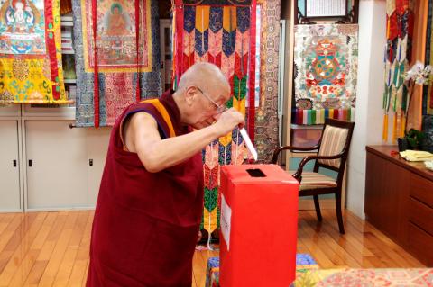 Like their counterparts around the world, Tibetans in Taiwan yesterday cast votes for their next kalon tripa, Tibetan for “prime minister,” at two poll stations in Taoyuan and Taipei.