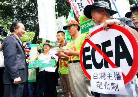 Earlier the alliance, the Northern Taiwan Society and other groups gathered at the legislature where, supported by a Democratic Progressive Party lawmaker, said cross-strait pacts have failed to make life better for most Taiwanese.