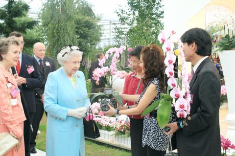 Cheng Hsiu-wei (鄭秀煒), who began a career in floral design by selling flowers as a street vendor, won a gold medal at the Chelsea Flower Show for outstanding floral design on May 24 in London. Now she says she hopes one day to decorate Buckingham Palace with orchids from Taiwan.