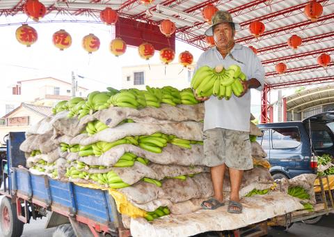 Taiwanese Farmers’ Rights Association chairman Wu Chiu-ku (吳秋榖) said retail prices were usually between NT$2 and NT$5 higher than the wholesale price, meaning that people in Taiwan purchased bananas at between NT$19 and NT$22 per kilo.