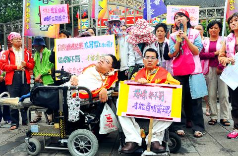 After a rally outside the Executive Yuan, COSWAS representatives petitioned lawmakers from both the DPP and the KMT.