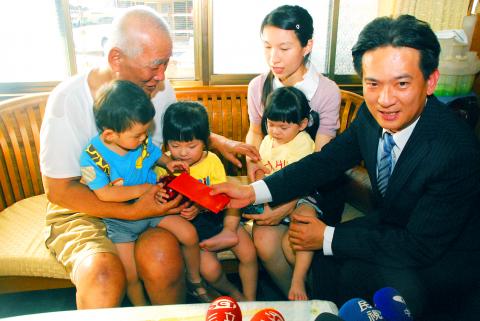 Lin returned the donations to the family in Greater Tainan yesterday afternoon on behalf of Tsai.