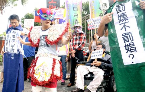 DPP Legislator Huang Sue-ying (黃淑英) also proposed amendments to penalize only the client, not the sex worker.