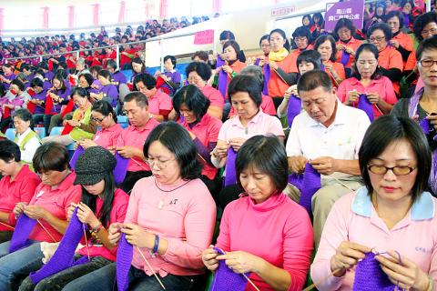The record-breaking knit-a-thon was witnessed by Tsai Po-ying (蔡柏英), deputy director-general of Greater Kaohsiung’s Civil Affairs Bureau and a lawyer.