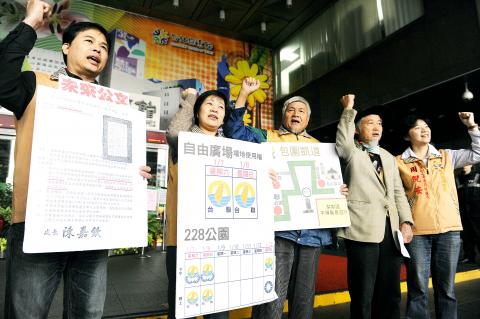 TSU legislator-at-large candidate Huang Wen-ling (黃文玲) said the deadline for applications for permits to hold campaign events at the park on Jan. 7, Jan. 8 and Jan. 13 was Nov. 23, but the city government extended the deadline to Nov. 28 and allowed the KMT to apply for the permits as well.