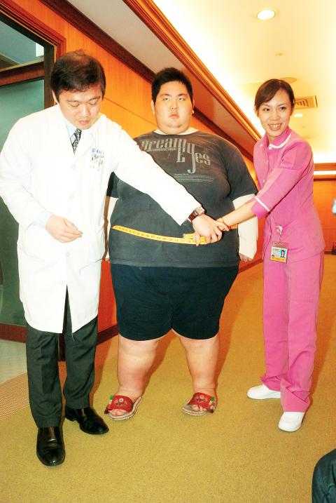 An 18-year-old college student surnamed Wu (吳), who weighs 226kg, with a body mass index (BMI) of 85, recently underwent surgery to slim down in the hopes of finding a girlfriend, losing 3kg three days after the surgery was completed.