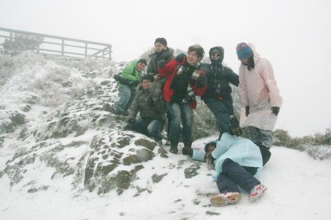 Snow accumulation around Wuling Farm and Songxue Lodge in the Hehuanshan National Forest Recreation Area were 7cm, the police said.
