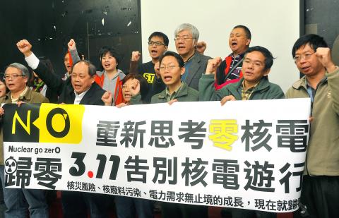 To commemorate the tragedy, in which a powerful earthquake and ensuing tsunami caused the Fukushima Dai-ichi nuclear power plant to fail, plunging Japan into a nuclear crisis, the organizers said they hope to draw more than 10,000 demonstrators in rallies to be held in Taipei, Greater Taichung and Greater Kaohsiung.