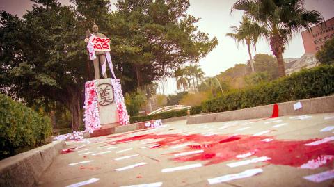 A group of students at National Cheng Kung University (NCKU) yesterday marked the 65th anniversary of the 228 Incident by staging an art installation on campus to symbolize a horrific event in Taiwanese history, in hopes that the public can learn from the nation’s past mistakes.