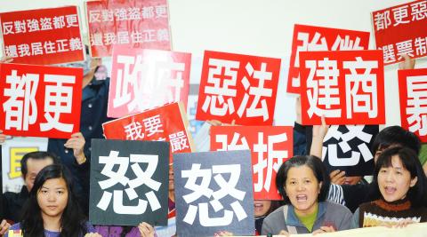 “Article 1 of the Urban Renewal Act states that urban renewal projects are meant to promote the planned redevelopment of land and revitalize urban areas for the purpose of enhancing the public interest,” said Chen Hung-ying (陳虹穎), a member of the Taiwan Alliance for the Victims of Urban Renewal.