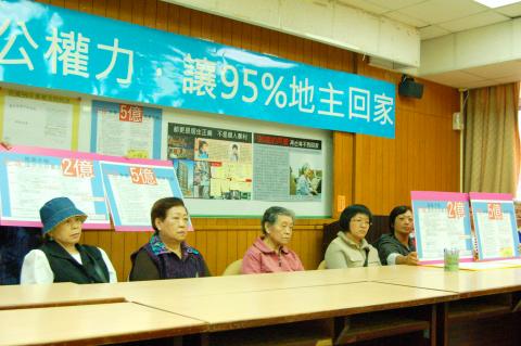“My 77-year-old sick mother now lives in a nursing home. She asks me when she will be able to come home every day ... and I have no answer for that,” another former resident surnamed Lee (李) said. “We trusted the city government. We thought we would have a new house to live in, but we’ve got nothing so far.”