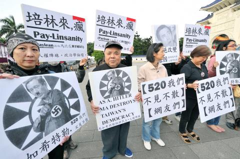 Chang Hung-lin (張宏林), executive director of Citizen’s Congress Watch and a co-convener of the rally, said the controversial modification of the Act Governing Food Sanitation (食品衛生管理法) should be disclosed and discussed, and the government should explain its decision to legislators and those who still hold doubts.