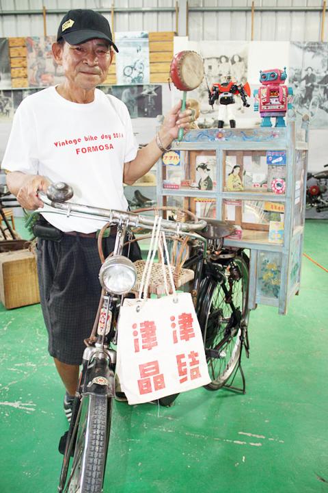 One of the people visiting the exhibition was 66-year-old Cheng Chi-lin (鄭啟林), who pointed to a bicycle used by green-pea soup vendors and said it was one of the sights from the old days he missed the most.