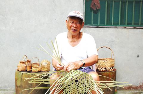 Tu Lung-chen (涂龍珍), 83, comes from Bade Village (八德) in the county’s Longtan Township (龍潭), where he showcases a number of Hakka-style bamboo woven farm implements that he has made himself from childhood memories.