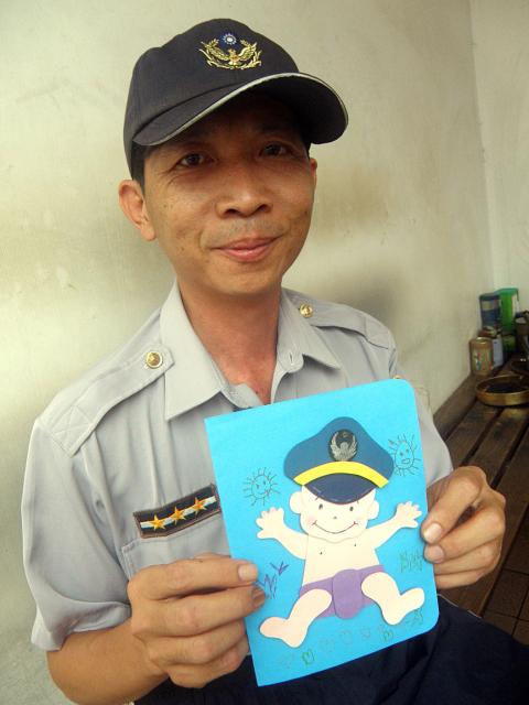 Chen Kun-hsiang (陳坤祥), a police officer at Wujia police station in the Greater Kaohsiung Police Department’s Fongshan Precinct (鳳山), was the recipient of the card.