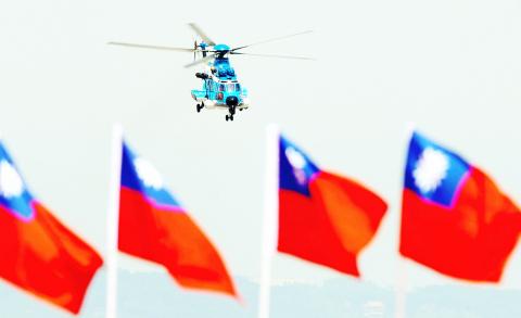 The Super Pumas are the first European-built helicopters to serve in the Air Force’s rescue squadron, joining the Sikorsky S-70Cs, the nation’s main workhorse for search and rescue operations, which were acquired in the 1980s and 1990s. The total price tag for the three helicopters was NT$3.6 billon (US$120 million).