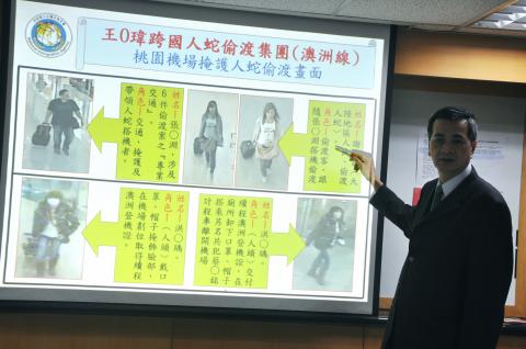 The agency’s border affairs corps discovered evidence in 2010 that former snakehead Feng Sheng-hsiung (封勝雄), who had previously been involved with the group and just been released from jail, had gone back into the human--trafficking business with a cross-strait -trafficking group allegedly run by Wang Cheng-wei (王呈瑋).