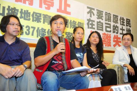 Aboriginal activists yesterday urged lawmakers to withdraw a proposed revision of the Act for the Utilization and Transfer of Reserved Mountainous Land (山坡地保育利用條例), which would alter a pending period that currently allows Aborigines to secure the ownership of reserve lands, warning that the planned change could accelerate the loss of Aboriginal lands to developers.