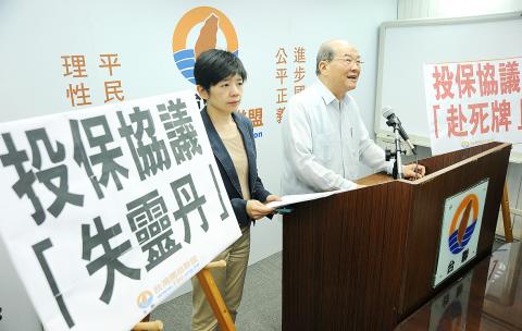 “The agreement is really disappointing. It made no breakthroughs and is only maintaining the ‘status quo,’” Cross-Strait Agreements Watch convener Lai Chung-chiang (賴中強) said. “It contains no third-party arbitration measures for trade disputes, which exist in most international trade agreements.”
