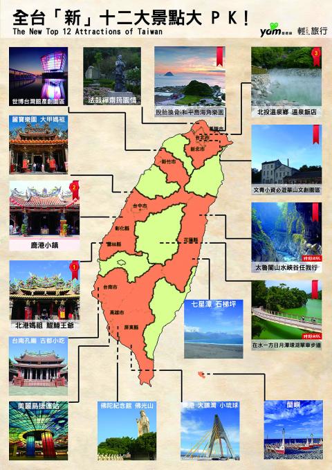 Yam.com public relations manager Chuang Feng-kang (莊峰綱) said the polling began last month. In the first stage, tourism experts came up with 32 recommended sites and places for the online voting, he said.