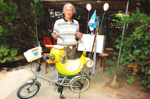 As the ensemble — whose duck-styled pedestal is made of glass fiber, galvanized iron, wood and shells — is mounted on a bicycle, Teng is able to stage a live performance wherever he wants and with whatever instruments he desires.