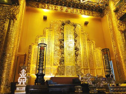 After three months in the making, the Nan Kun Shun Temple in Greater Tainan unveiled a stele made from pure gold on Thursday last week, which has been touted by the temple as the most glorious of its kind in the world.