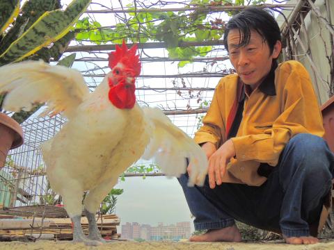 Temple director Chang Wei-sheng (張為盛) said he and his wife had noticed the rooster’s strange sounds when they purchased it from a market.