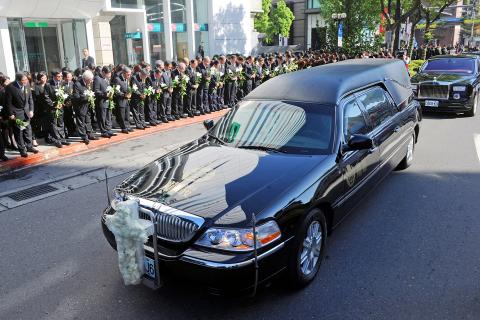 The motorcade drove past Chinatrust’s headquarters in Taipei’s Xinyi District (信義), where more than 2,000 employees lined up on the street to mourn Koo’s death, many of them in tears.