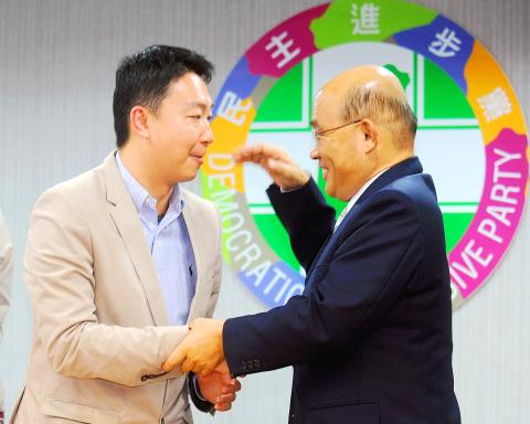 At a press conference, Su praised Chen for his performance in the Taichung City Council and said that while the election would be a tough battle, Chen is the DPP’s best candidate in the constituency.