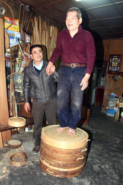 For 61 years, 76-year-old Chen Chi-huang (陳錦煌) has carried on the family trade of making and selling handwoven bamboo steamers, but he is worried that this traditional skill is disappearing given low market demand and a lack of apprentices.