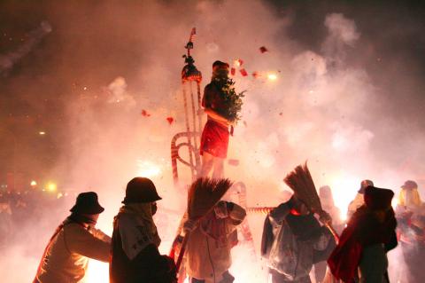 The tradition has also attracted foreign residents, such as Mark Jackson from South Africa who has lived in Taiwan for 10 years and Till Di Luniere from Germany who acted as Master Handan in a bombing session reserved for foreigners yesterday.