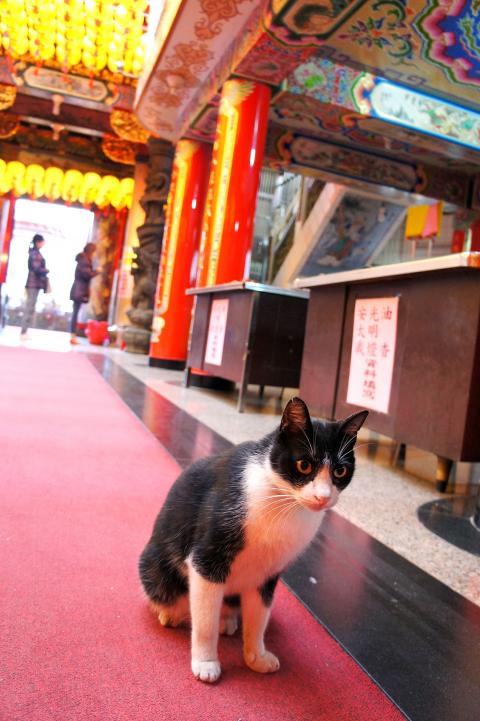 A house of worship in New Taipei City’s (新北市) Sanchong District (三重) has become known as the “cat temple” (貓廟) for the friendly cats that reside there, attracting public attention as well as coverage by international media.